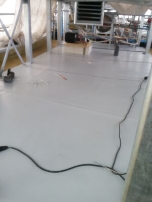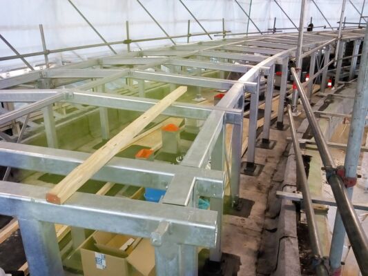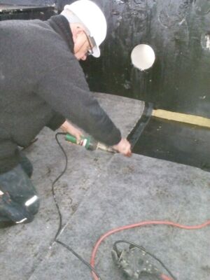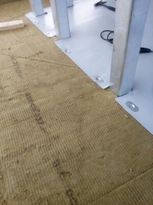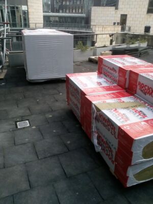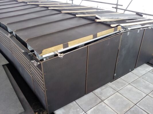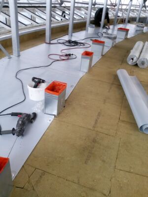 Es stand an, diverse vorhandene Aufbauten mit Metalleindeckungen zurück zu bauen und damit Flächen für die neue Gebäudetechnik zu schaffen. Nach dem Aufbau der Stahlkonstruktionen hatten wir die Aufgabe, die Dachflächen mit Gefälledämmung zu belegen und mit Folienbahnen abzudichten.